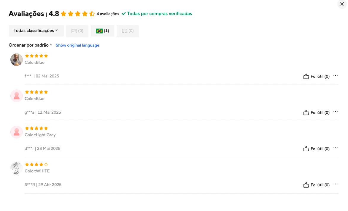 Cores disponíveis: Azul, Verde, Amarelo, Laranja, Cinza e Branco